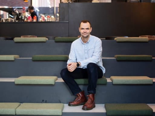 kvinne med svart bukse og hvit skjorte med engangskopp i hånden går oppover betongtrapp. foto.Canva