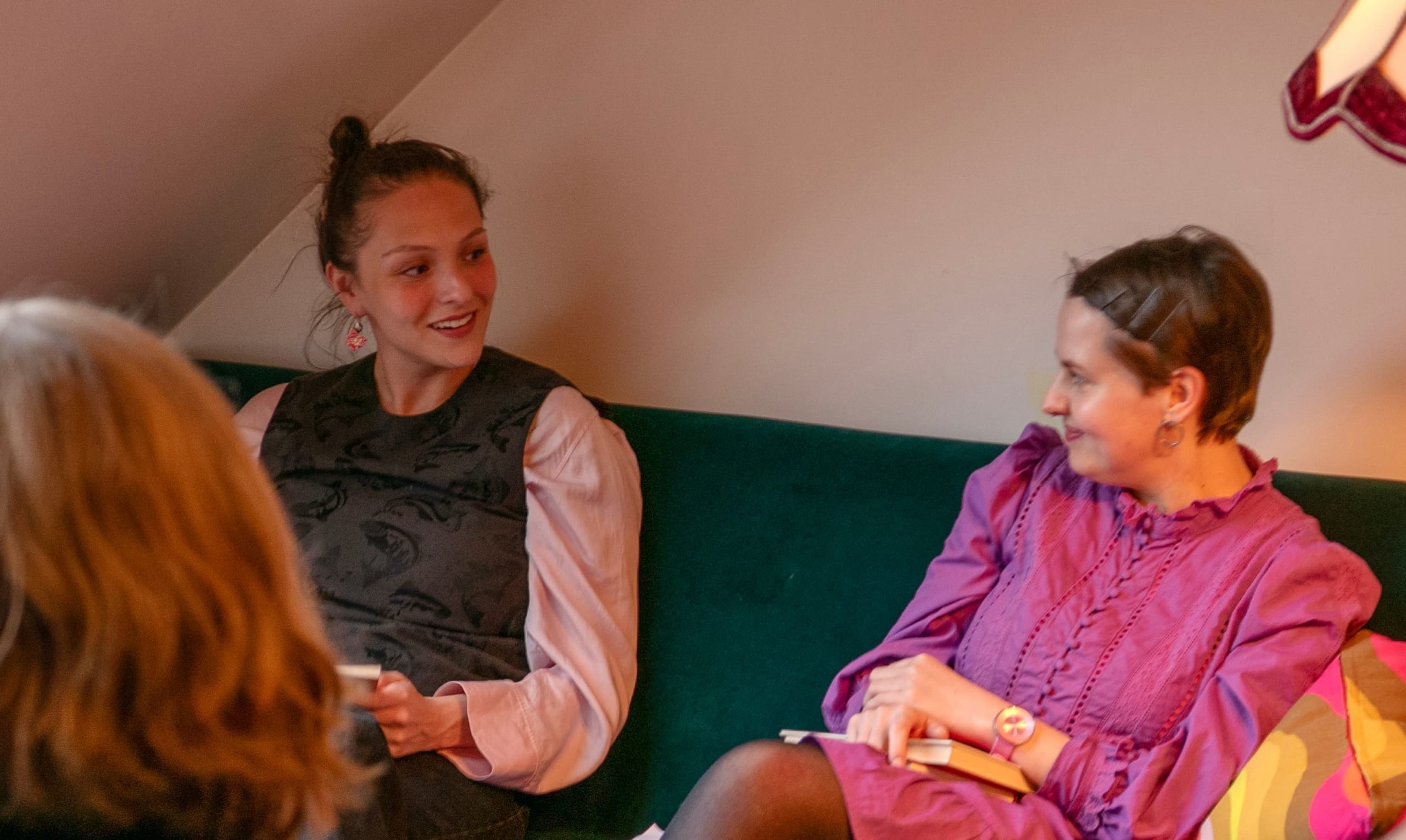 – Det var veldig gøy. Intimt. Det blir en annen type samtale når vi er hjemme hos noen. Det kan fort bli litt stivt på litteraturhus. Det blir veldig sånn proft, sier hun, før samtalen overdøves av livlig prat fra publikum. Noen ler. Pacula er også fornøyd.