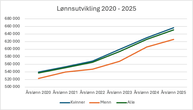 Lønnsutvikling kvinner og menn 2020–2025